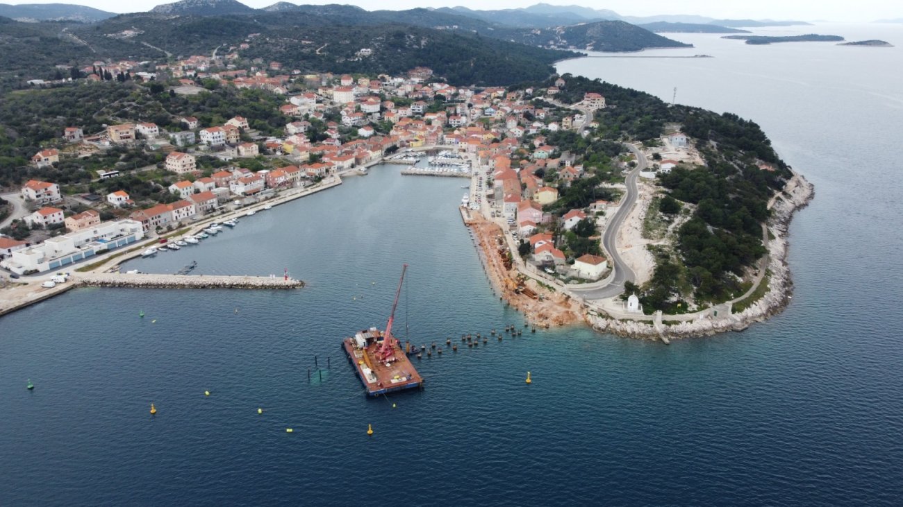 „Najteži dio radova je iza nas. Završena su 72 pilota na kojima se temelji čitava konstrukcija privezne obale. Na nju se nadovezuje lukobran koji je kombinacija 26 pilota, čije je bušenje u tijeku te nasipa koji je formiran. Vrši se predopterećenje da bi se učvrstio nasip, kako bi se na njega položili polugotovi elementi. Dosad su betonirana četiri stupa", rekao je ravnatelj Županijske lučke uprave Zadar Davor Škibola.