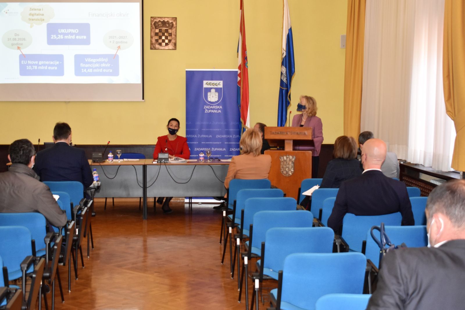 Ravnateljica Agencije za razvoj Zadarske županije ZADRA NOVA, Marina Dujmović Vuković, prezentirala je Nacionalni plan oporavka i otpornosti s financijskom perspektivom 2021-2027. godine, s posebnim osvrtom na gospodarski dio Plana razvoja Zadarske županije. Najavila je da su na razini Zadarske županije pripremljeni brojni projekti koji će biti kandidirani na natječaje iz EU fondova, a trebali bi dati dodatan zamah infrastrukturnom i gospodarskom razvoju naše županije.