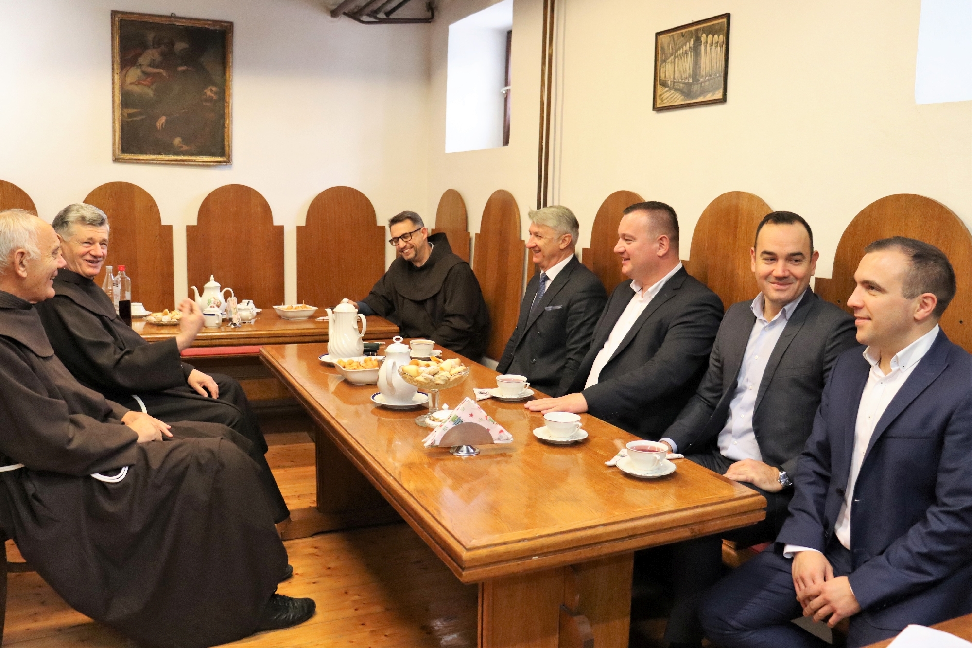 U samostanu sv. Frane ugostili su ih novi provincijal Franjevačke provincije sv. Jeronima fra Tomislav Šanko, bivši provincijal fra Andrija Bilokapić i gvardijan samostana fra Stipe Nosić.