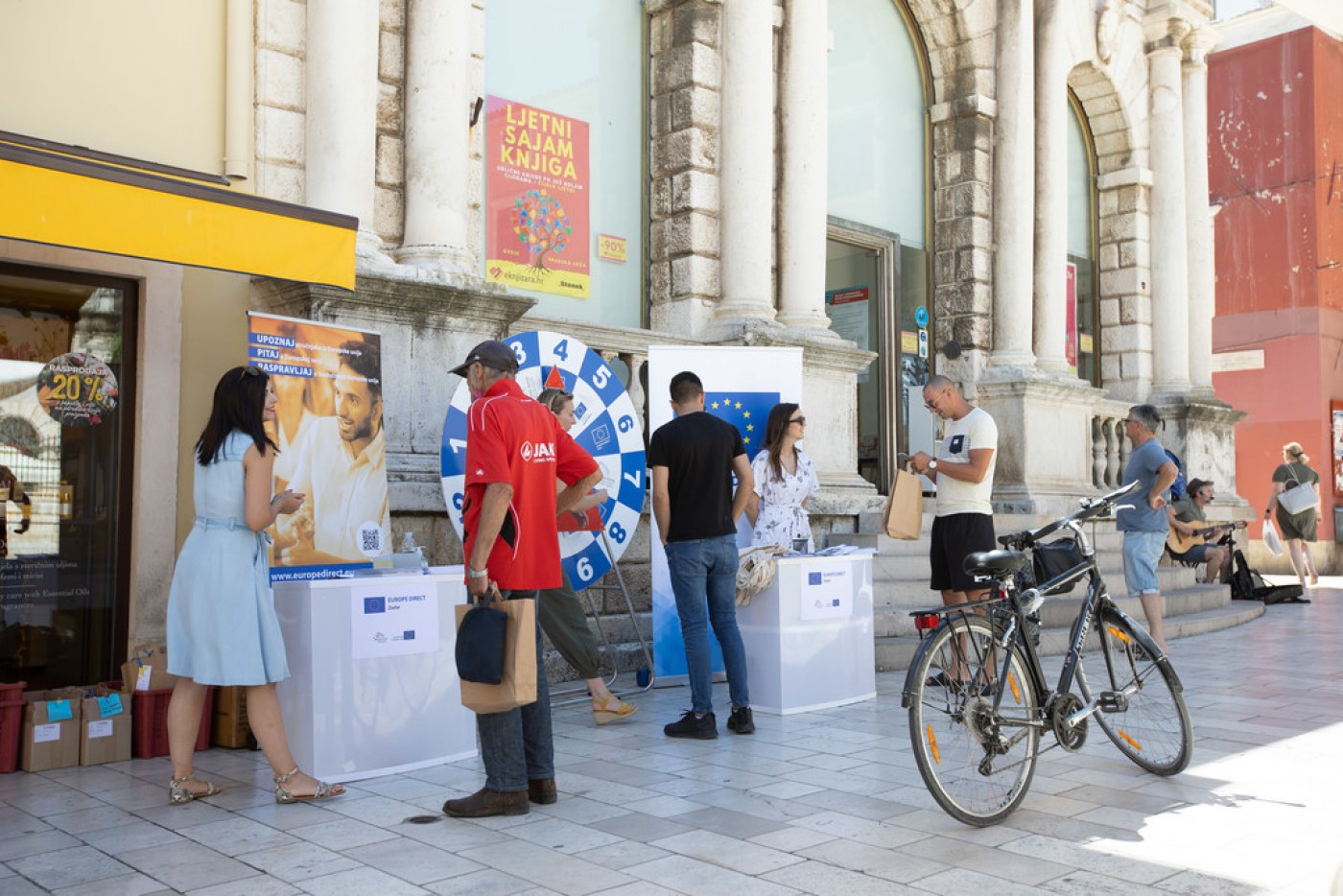 U skladu s Direktivom EU-a o plastičnim proizvodima za jednokratnu upotrebu od danas se određeni plastični proizvodi za jednokratnu upotrebu više ne nalaze na tržištu EU-a, pa su građanima simbolično podijeljene platnene vrećice za kupovinu. Posjetitelje su doma ponijeli i poklone koje im je donijelo „kolo sreće“. O aktivnostima Unije mogli su se informirati i kroz tematske brošure i informativne materijale.