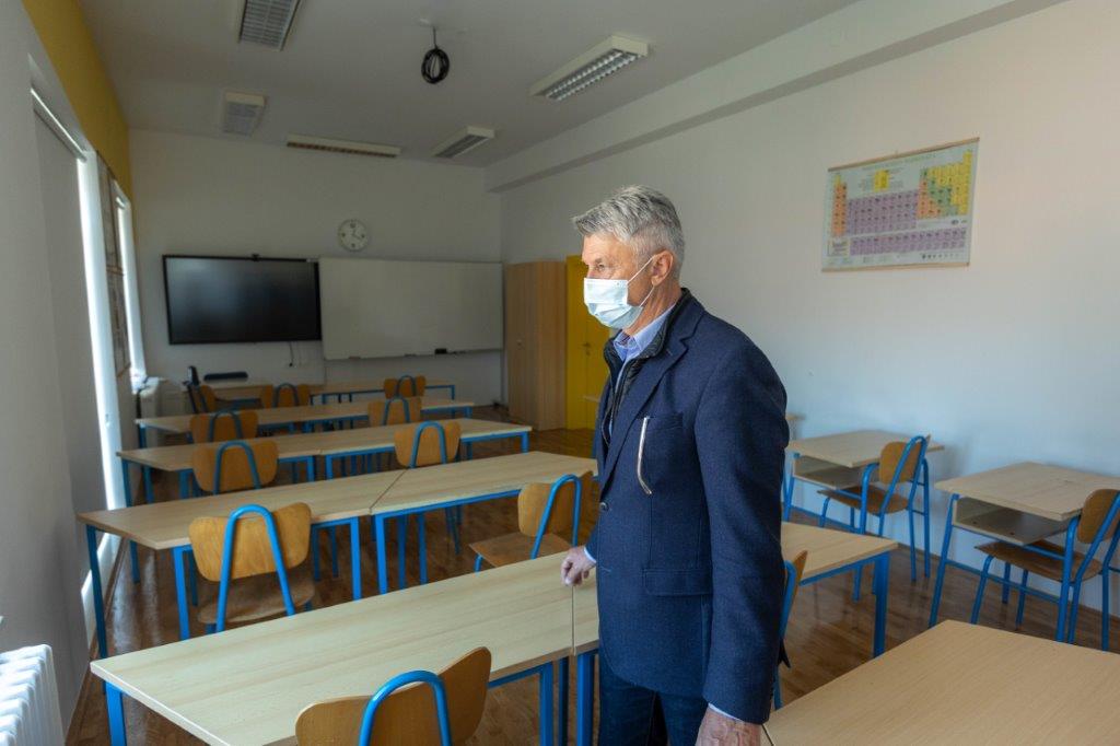 Nakon obilaska sirane posjetio je OŠ Jurja Dalmatinca Pag gdje su ga uz gradonačelnika Paga Antu Fabijanića i njegovih suradnika dočekale ravnateljica osnovne škole Željka Zubović i ravnateljica srednje škole Bartula Kašića Marija Čemeljić Pečirko. Ravnateljica Zubović zahvalila je županu i Zadarskoj županiji na odličnoj suradnji koju ima kroz dugi niz godina tijekom kojih su realizirani važni projekti u školi. Upoznala je župana sa završenim radovima na uređenju drugog kata. Investicija je vrijedna 1.030.099,88 kuna, od čega je Ministarstvo regionalnog razvoja i fondova Europske unije financiralo 610.805,13 kuna ,a Zadarska županija 419.294,75 kuna. Izradu projektne dokumentacije za realizaciju ovog projekta financirao je Grad Pag. Na drugom katu škole napravljena je rekonstrukcija prostora kojom su dobivene dvije nove učionice, izmijenjene su elektro instalacije, uređeni podovi i zidovi te je izmijenjena unutarnja stolarija. Nakon realizacije ovog projekta stvoreni su uvjeti za rad u jednoj smjeni pa se nastava za učenike od 1. do 4. razreda odvija u jutarnjoj smjeni, što će znatno utjecati na podizanje pedagoškog standarda, ali i kvalitetniju organizaciju vremena za učenike i njihove obitelji te učitelje i sve djelatnike Škole. Rekonstrukcija 2. kata škole u Pagu treća je faza u planu obnove zgrade. Projekt obnove zgrade započeo je 2017. godine, izmjenom krova. Njegova vrijednost je iznosila 1.066.416,14 kn i u cijelosti ga je financirala Zadarska županija. Godine 2019. završen je „Projekt energetske obnove zgrade Osnovne škole Jurja Dalmatinca na adresi Ante Starčevića 10, Pag“ . On je realiziran u suradnji Ministarstva graditeljstva i prostornog uređenja, Fonda za zaštitu okoliša i energetsku učinkovitost i Zadarske županije. Ukupna vrijednost ovog projekta iznosila je 2.728.078,69 kn od čega se 893.265,62 kn sufinanciralo iz Europskog fonda za regionalni razvoj (33%), 767.325,65 kn iz Fonda Ministarstva regionalnoga razvoja i fondova EU za sufinanciranje provedbe EU projekata (28%), te 1.067.487,42 kn sufinancirala je Zadarska županija (39%).