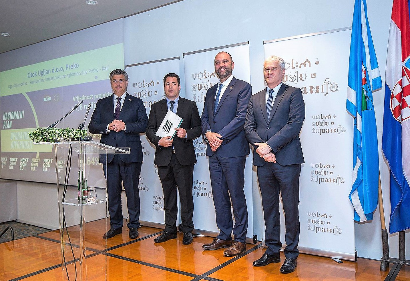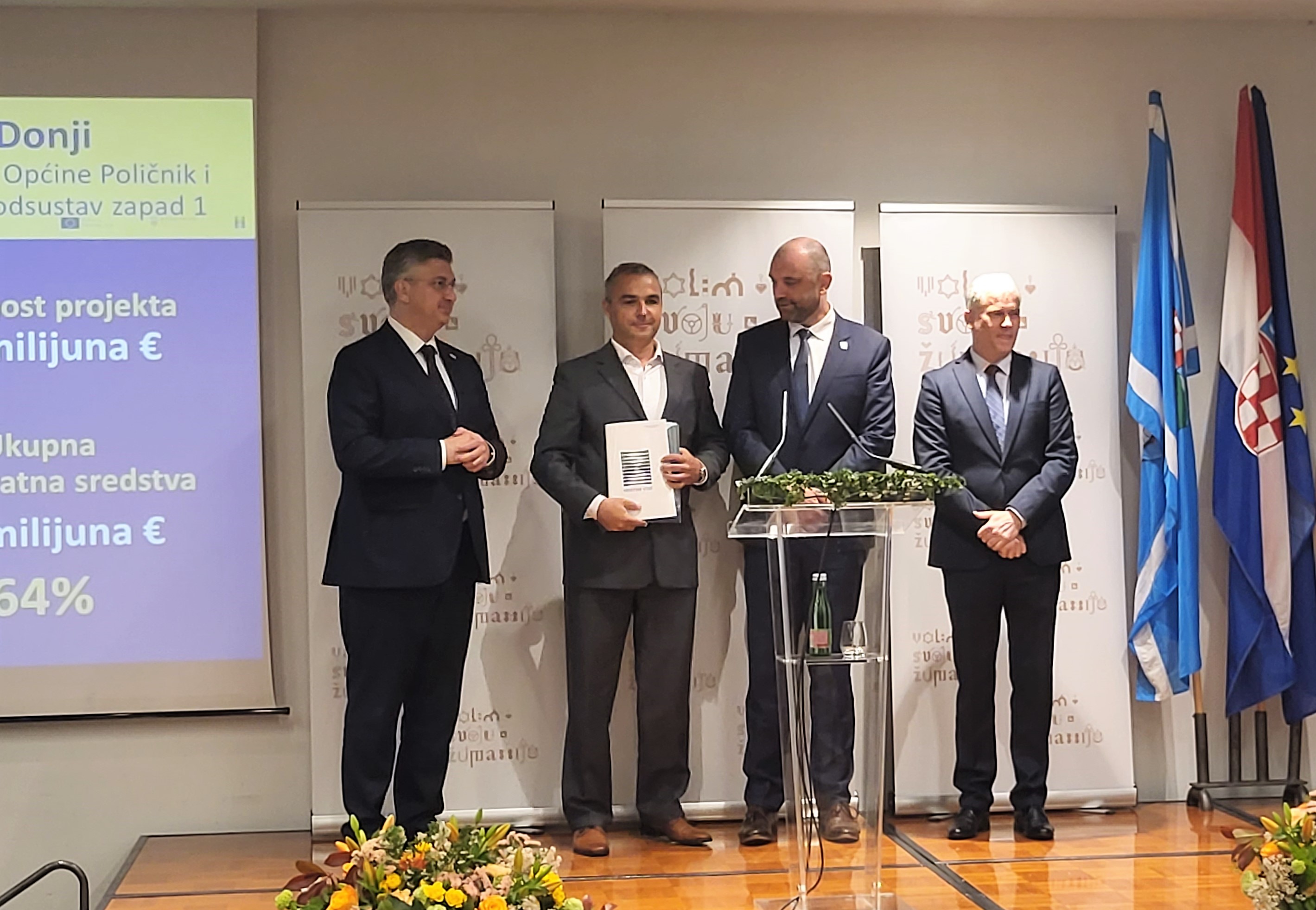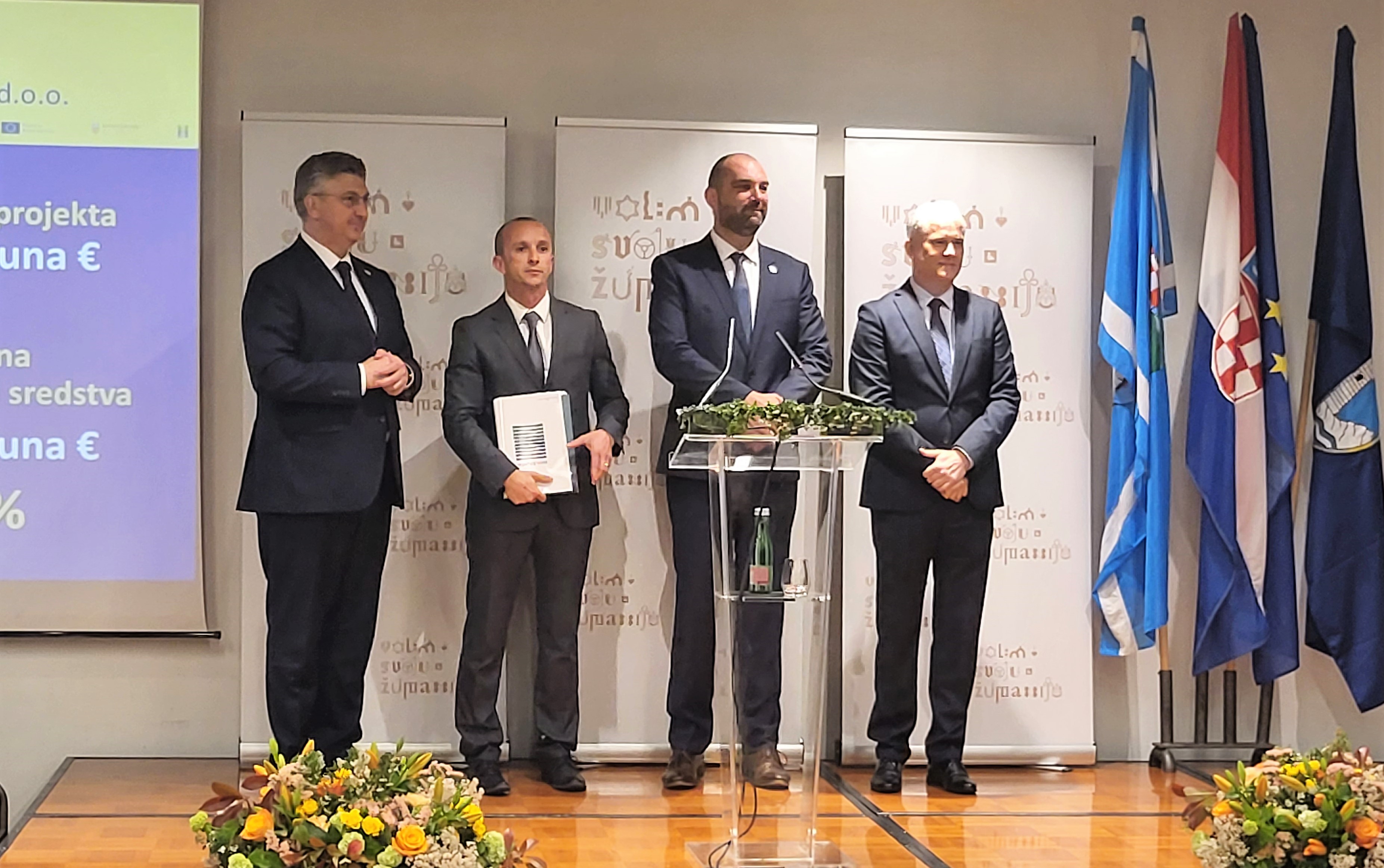 Direktorima komunalnih tvrtki koje su nositelji projekata ugovore su uručili predsjednik Vlade Andrej Plenković, državni tajnik u Ministarstvu gospodarstva i održivog razvoja Mario Šiljeg te generalni direktor Hrvatskih voda Zoran Đuroković.