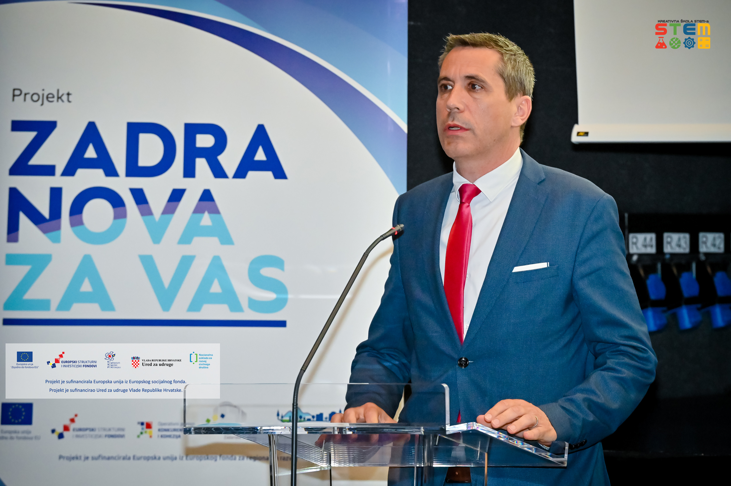Prisutne je pozdravio i Ivan Šimunić, pročelnik Upravnog odjela za obrazovanje, kulturu i šport Zadarske županije. Istaknuo je kako je projekt Kreativna škola STEM-a izvrstan primjer primjene STEM pristupa i vještina obuhvaćenih u jedinstvenu cjelinu – ciklus edukacije u kojem su organizacije civilnoga društva te djeca i mladi imali priliku steći znanja i vještine kroz praktičan rad u suradnji s IT stručnjacima i suradnicima iz različitih područja znanosti i tehničke kulture. Mišljenja je kako su projektom ostvareni izvrsni rezultati koji se odnose na nabavu suvremene, vrijedne opreme, provedbu radionica za ciljnu skupinu te uspostavu kreativnih sadržaja i alata. U budućnosti će Zadarska županija, potaknuta ovim dragocjenim iskustvom i dalje svesrdno podržavati nove projekte Zajednice.