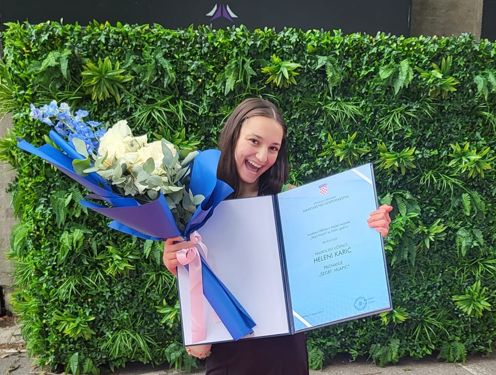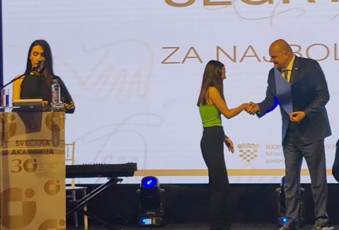 Ovo prestižno priznanje našoj učenici dodijelilo je Ministarstvo gospodarstva Republike Hrvatske na svečanoj akademiji povodom 30 godina Hrvatske obrtničke komore.