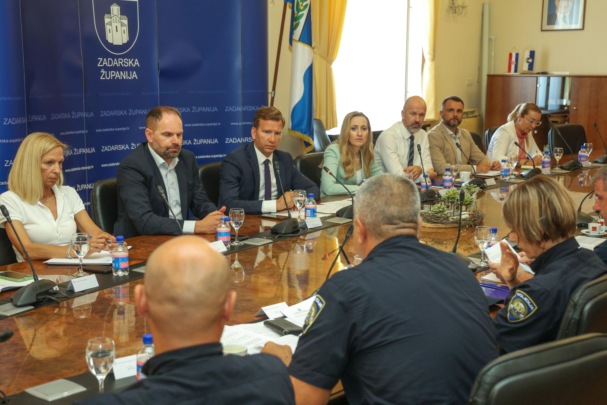 U Maloj vijećnici Doma Zadarske županije održan je sastanak župana Zadarske županije Josipa Bilavera s načelnikom Policijske uprave zadarske Antonom Dražinom. Sastanku su nazočili i suradnici župana i načelnika te voditelji službi Policijske uprave.