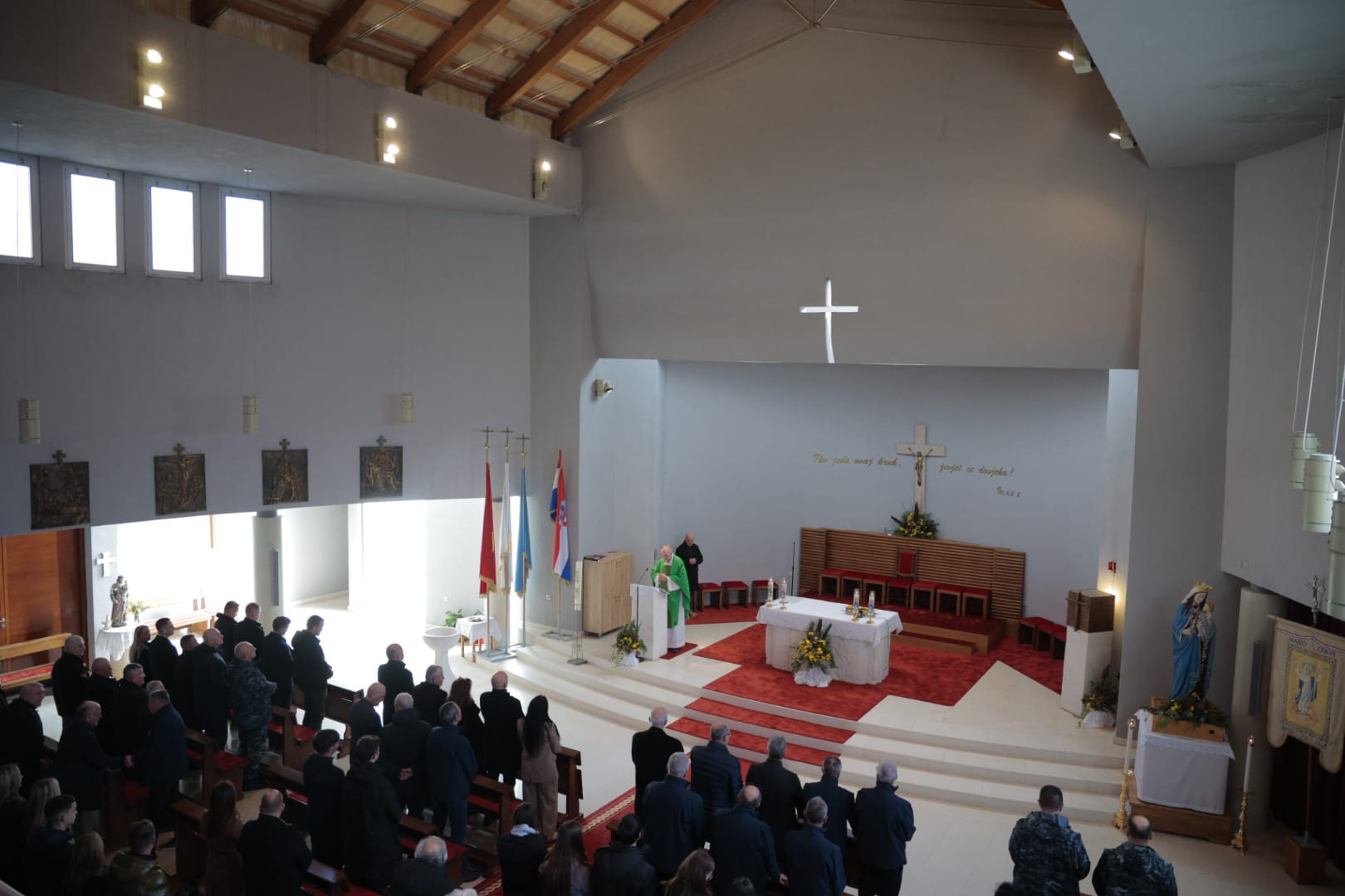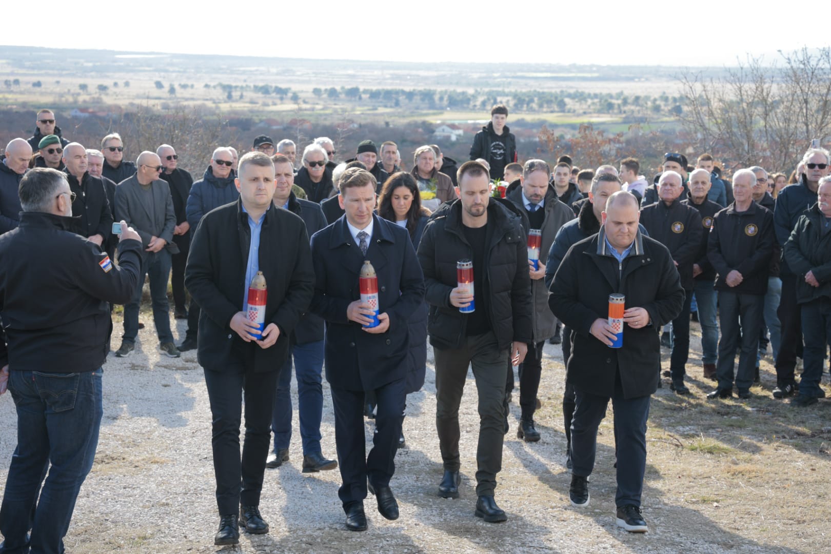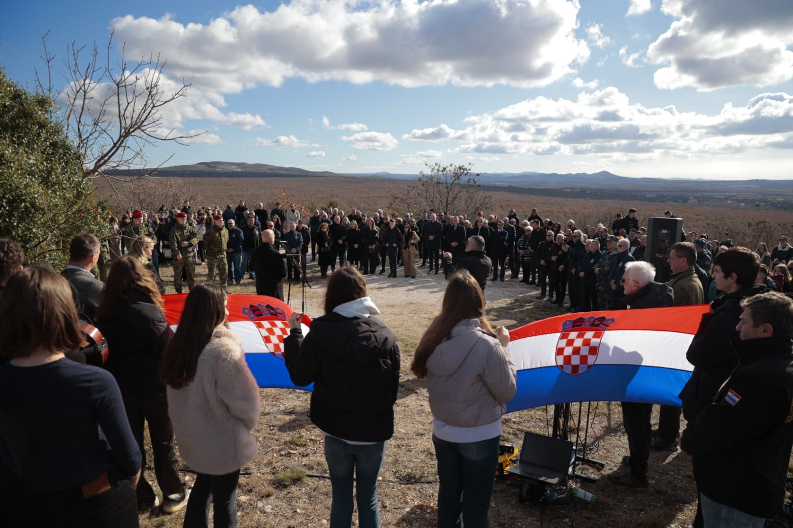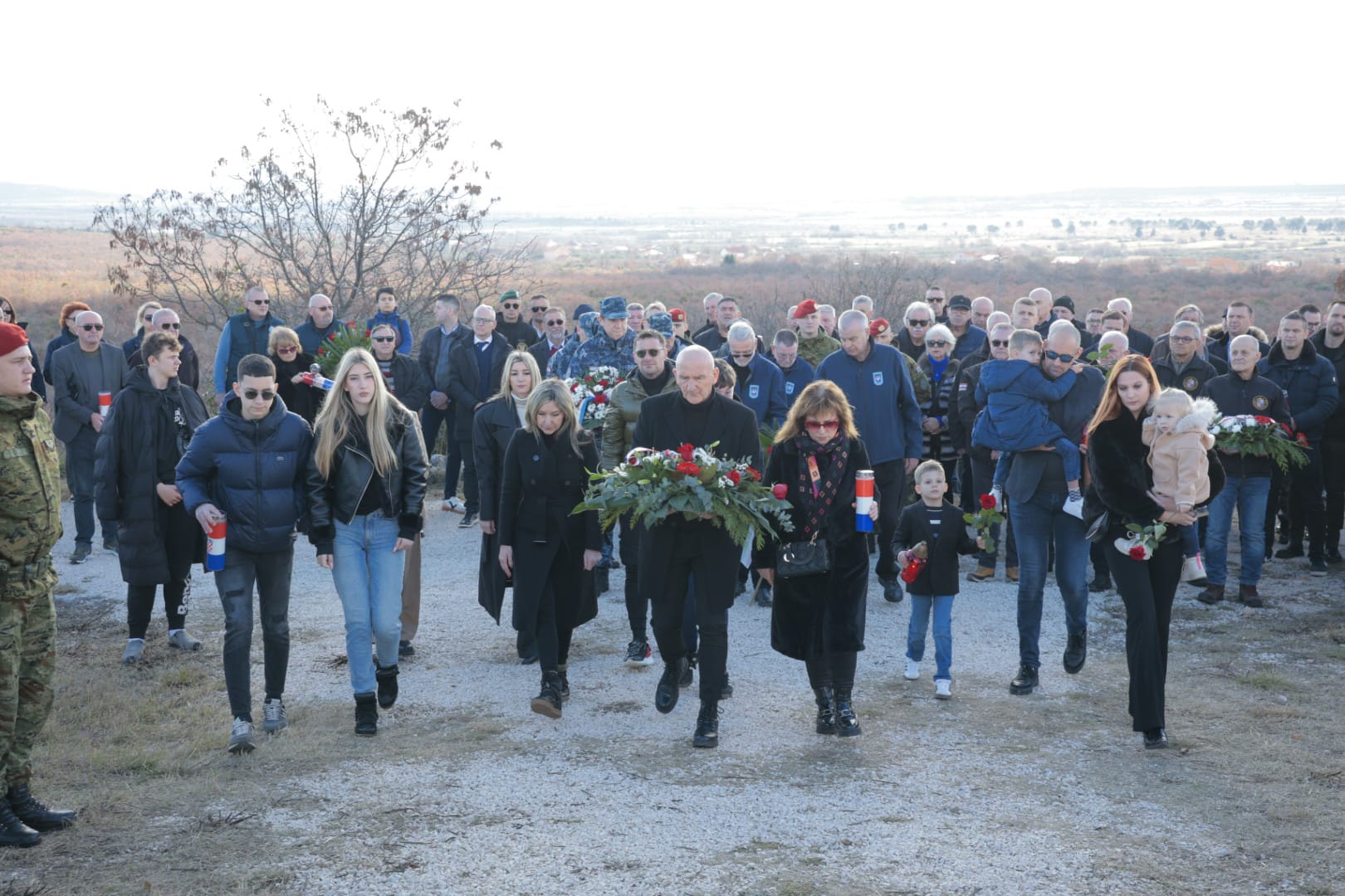 Odavanju počasti na Ražovljevoj glavici prethodilo je odavanje počasti polaganjem vijenaca na mjestu masovne grobnice u Škabrnji i sveta misa u župnoj crkvi.