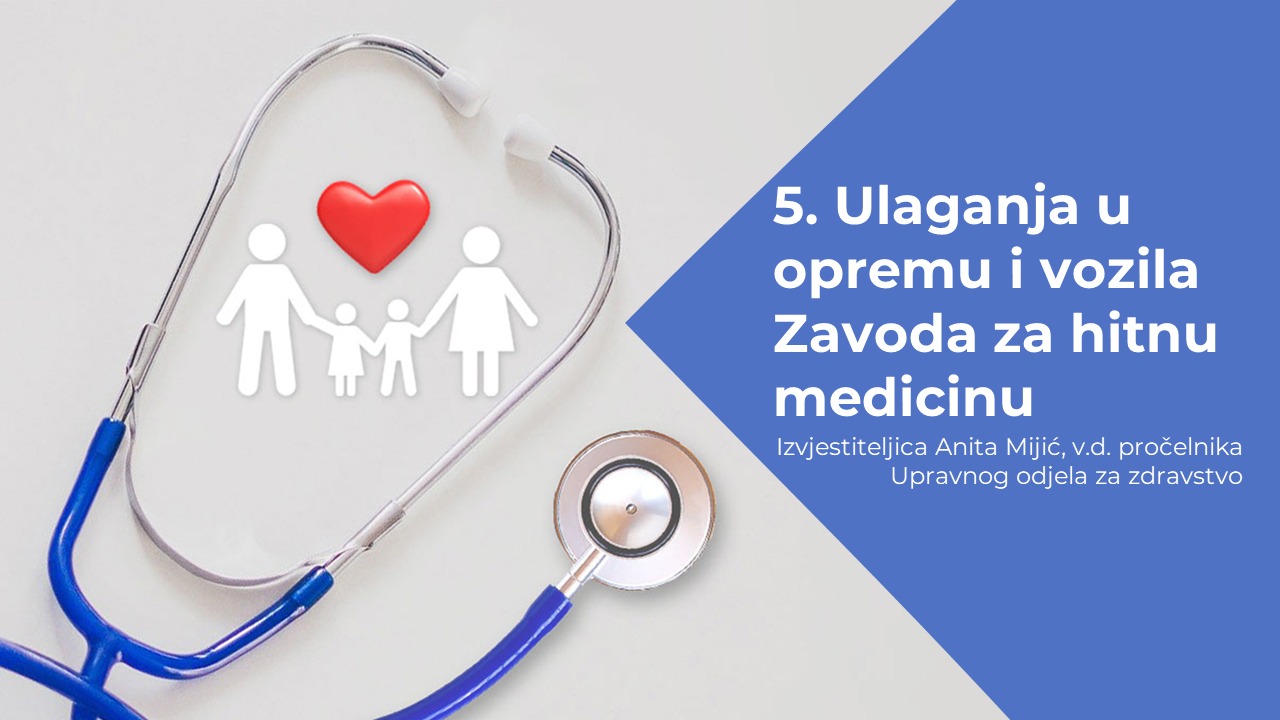 V.d. pročelnice za zdravstvo, Anita Mijić, izvijestila je kako je u visokoj fazi realizacije nabava osam potpuno novih vozila za hitnu medicinsku pomoć (HMP).
