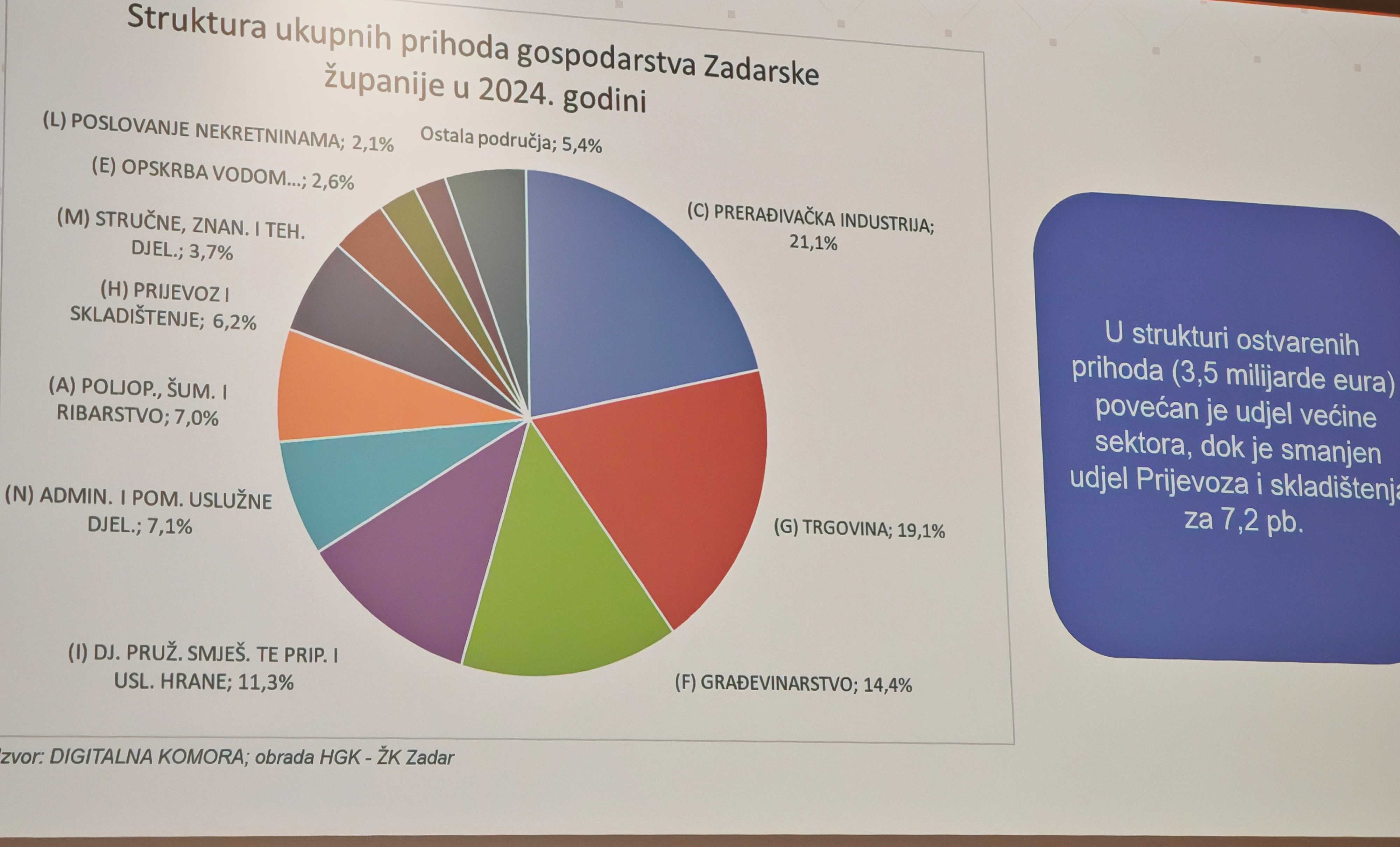 Protekla godina na području Zadarske županije obilježena je rekordnim brojkama zaposlenosti, novih poduzeća, povećanja plaća i ukupnih prihoda gospodarstva, a turizam je nadmašio dosadašnje rekorde s 2,2 milijuna dolazaka i 15,7 milijuna noćenja! Sve to rezultiralo je činjenicom da je Zadarska županija, prema HGK-ovoj metodologiji županijskih indeksa razvijenosti, trenutno druga u Hrvatskoj, odmah iza Grada Zagreba.