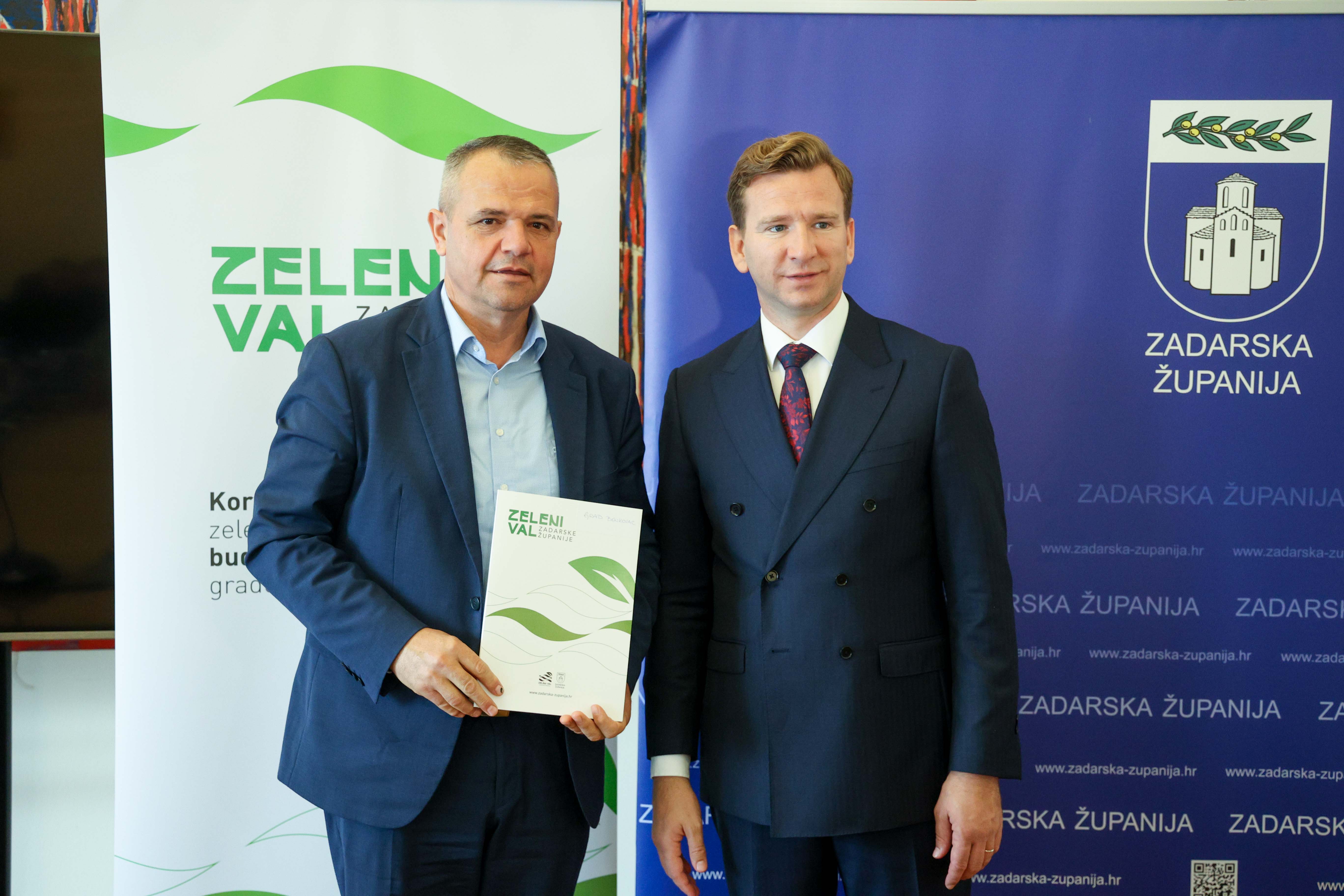 Župan Josip Bilaver uručio je predstavnicima devet gradova i općina prve ugovore iz programa „Zeleni val“. Riječ je o projektu vrijednom 200 tisuća eura namijenjenom ozelenjivanju urbanih sredina i jačanju otpornosti na klimatske promjene.