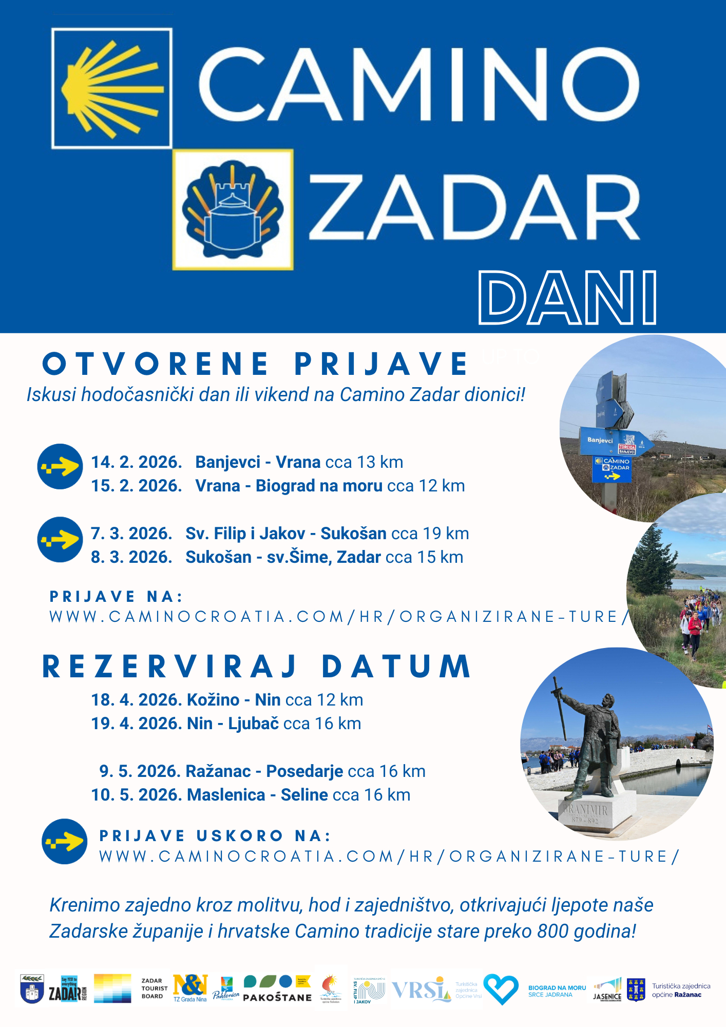 Camino Zadar dani 2026. tako donose priliku da barem na jedan dan svatko postane hodočasnik i iskusi snagu jednostavnog hoda koji povezuje ljude, prostor i baštinu.